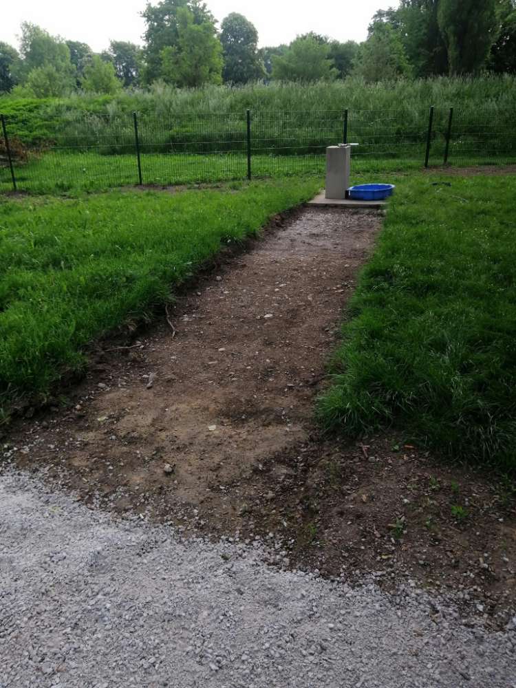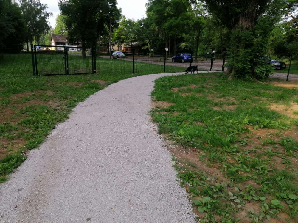 Wau! Die Hundezone wurde renoviert - neuer Zaun, ein paar Hügel, Wege mit Schotter, Trinkbrunnen, ...