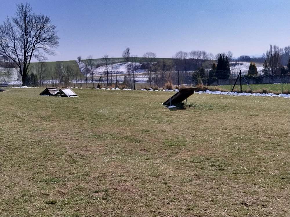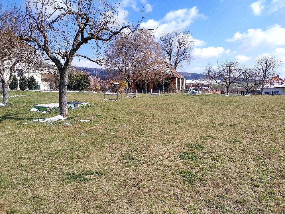Diese Hundezone: - ist schön groß - hat eine Agility-Anlage (laut Kommentar ev. Überprüfung nötig → herausstehende Nägel etc.) - hat keinen Wasseranschluss (ev. vom Friedhof holen)