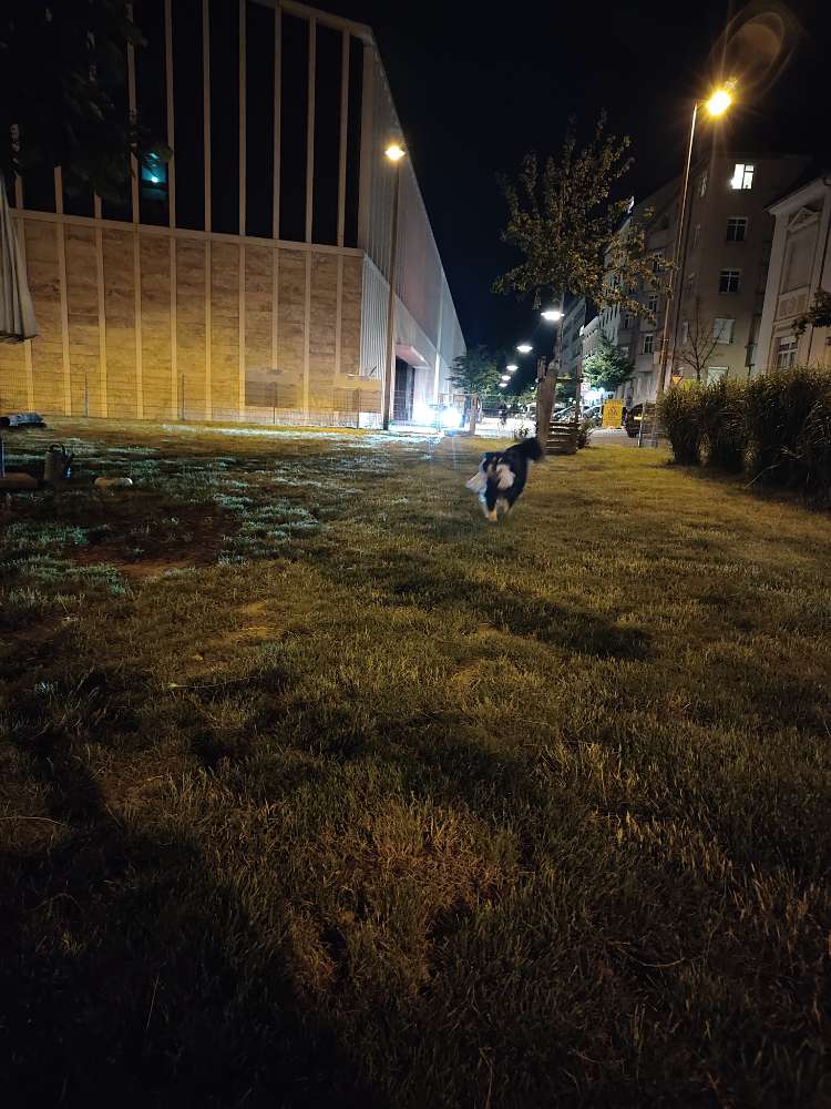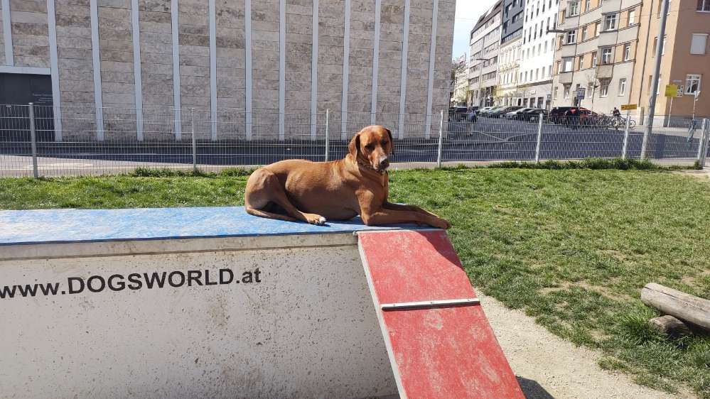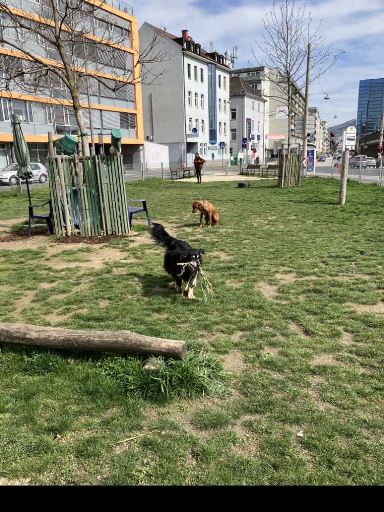 Schöne, kleine Grünfläche mit Zaun im Zentrum der Stadt.