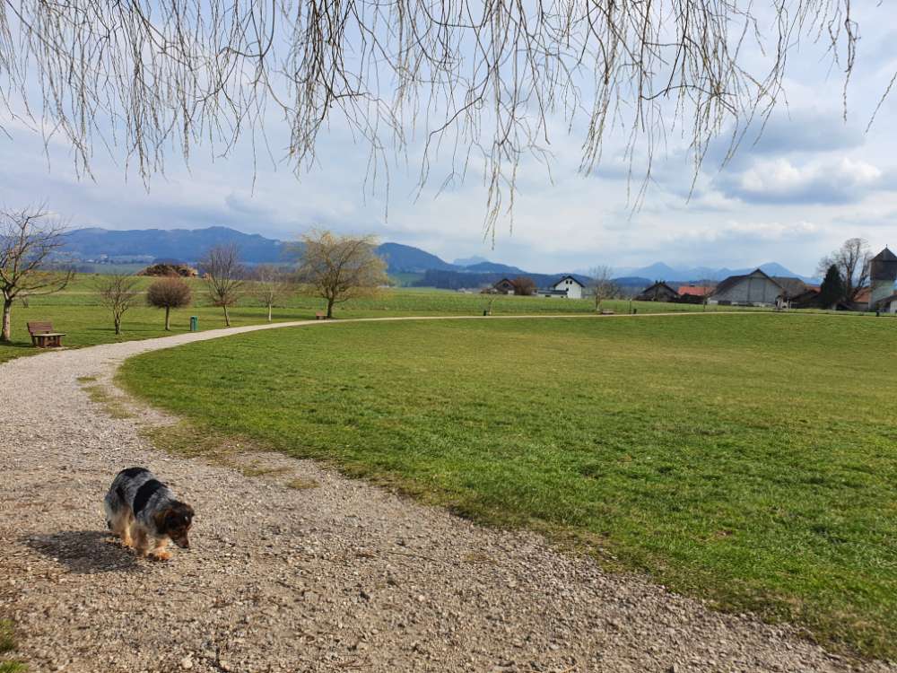 Geschotterter Rundweg ca. 500m , aber auch gehen am Zaun entlang ca. 900 m möglich.