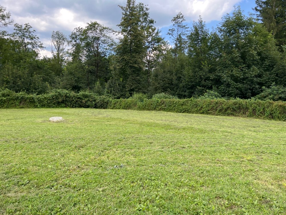 Schön grün! Wir sind im Urlaub hier und haben den Platz über Dogorama gefunden. Ein schöner Platz. Eine Bank vorhanden, frisches Wasser, Mülleimer, Kotbeutel. Sehr schön :-)