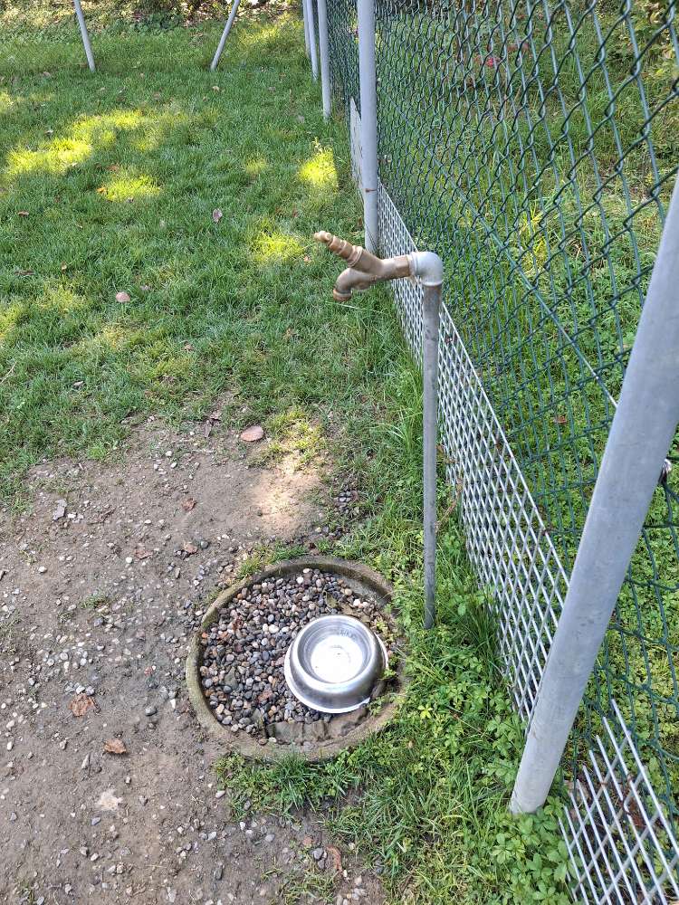 Schöner kleiner Auslauf, ca 1.60m gut eingezäunt und ca. 500m² groß. Bäume für Schatten, Kotbeutelspender und Sand um ggf gebuddelte Löcher wieder zu schließen. 2 Bänke, die nicht direkt am Zaun stehen (top!) Besonderes Augenmerk gilt dem funktionstüchtigen Wasserhahn. Der Platz ist sehr sauber.