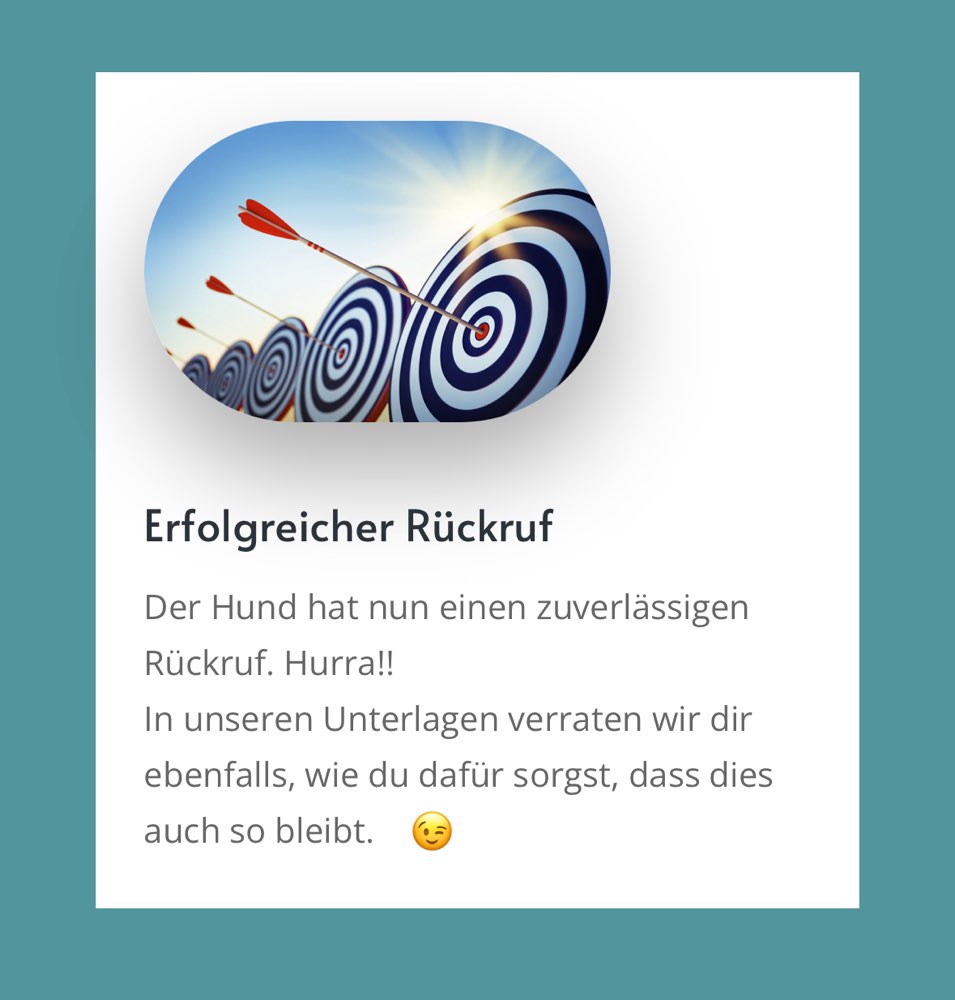 Der Rückruf ist eins der wichtigsen Signale überhaupt, denn er kann unter Umständen das Leben retten. Er gibt Freiheit, denn wer zuverlässig zurückkommt kann die Welt erkunden.