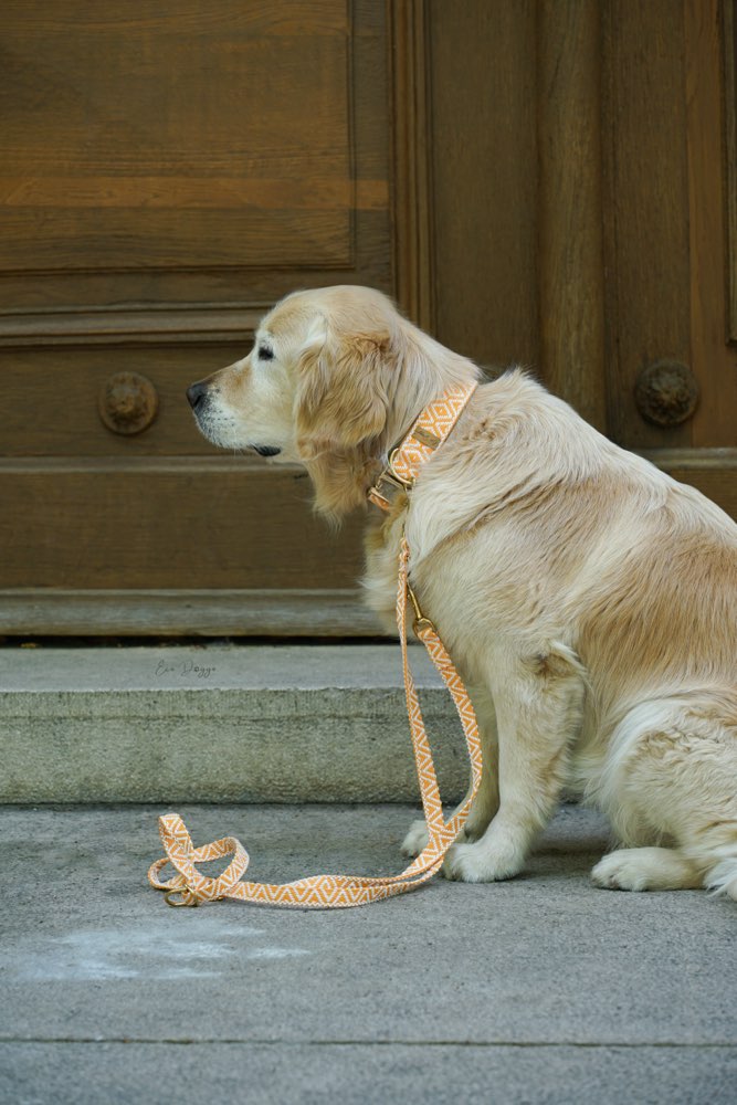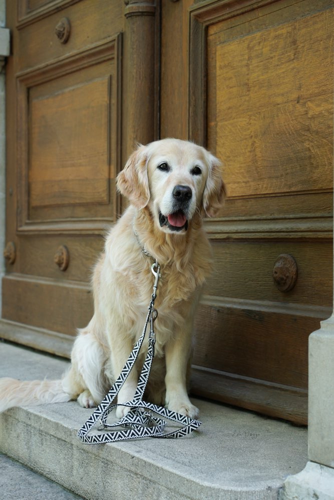 Die Leine besteht aus einem Baumwollgurtband und wird durch uns von Hand genäht.
