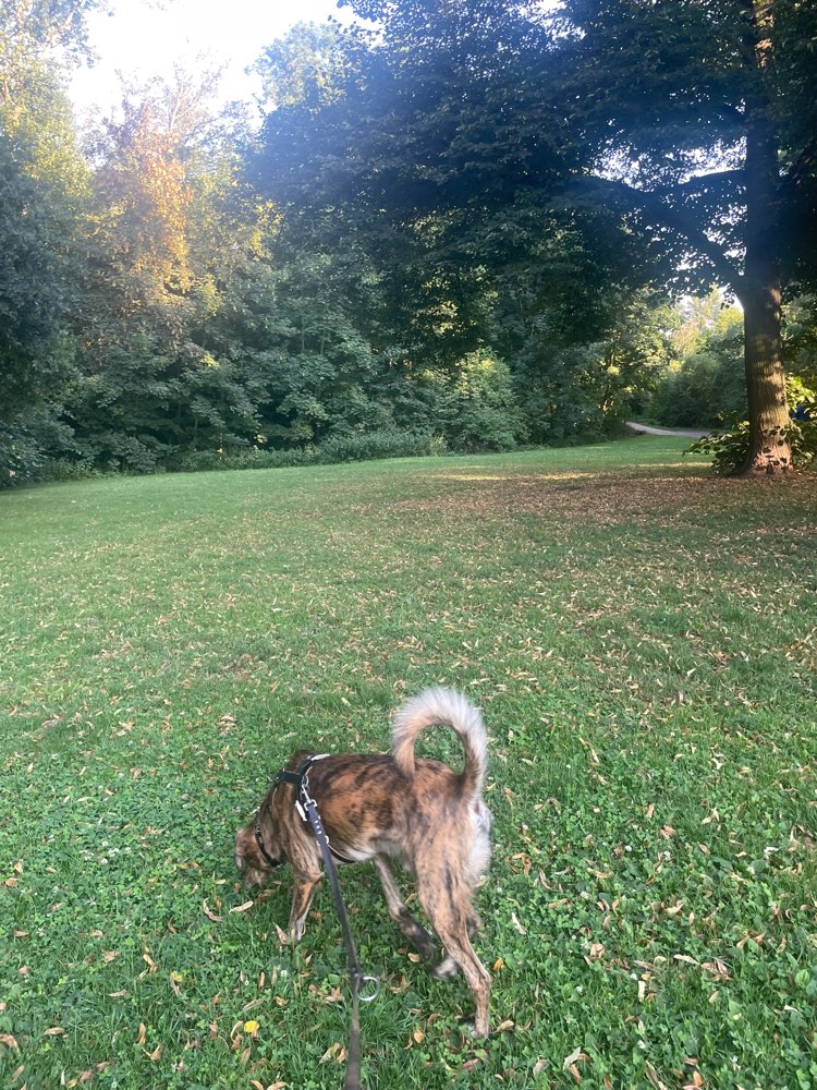 Leider ist diese Wiese winzig, also eher was zum lösen als zum Rennen.