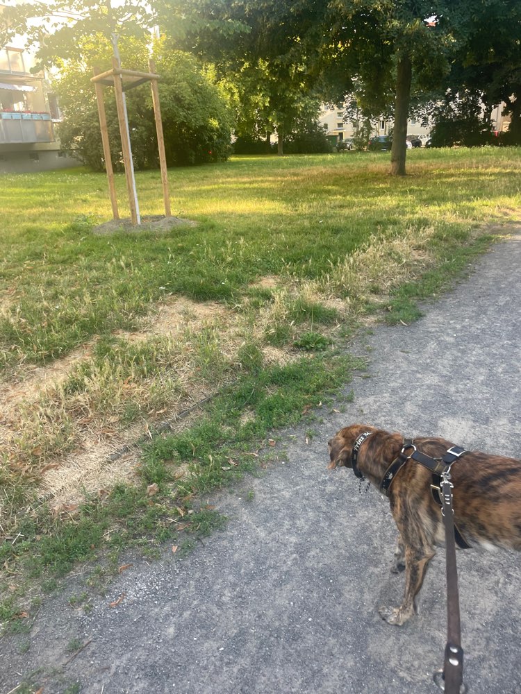 Eine kleine Hundewiese direkt an der Straße.