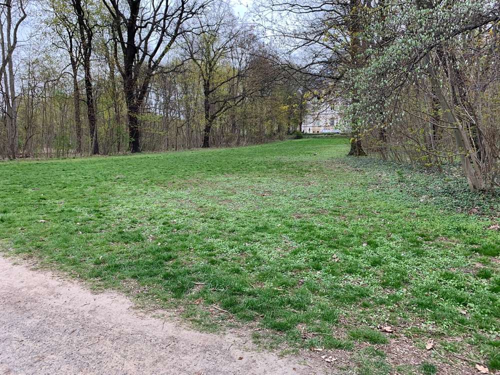 Die Wiese ist direkt am Weg, den viele Radfahrer nutzen. Es sind sehr viele Löcher im Boden. Am Rand stehen Eichen, also das Tummelfeld für Eichenprozessionsspinner.