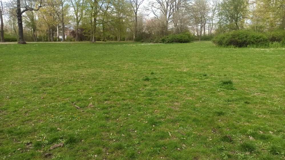 Die Wiese ist schön groß, es sind jedoch nur selten Hunde anzutreffen. Am Mülleimer wird der Müll des ganzen Parks abgeladen, da sollte man ein Auge auf seinen Hund haben.