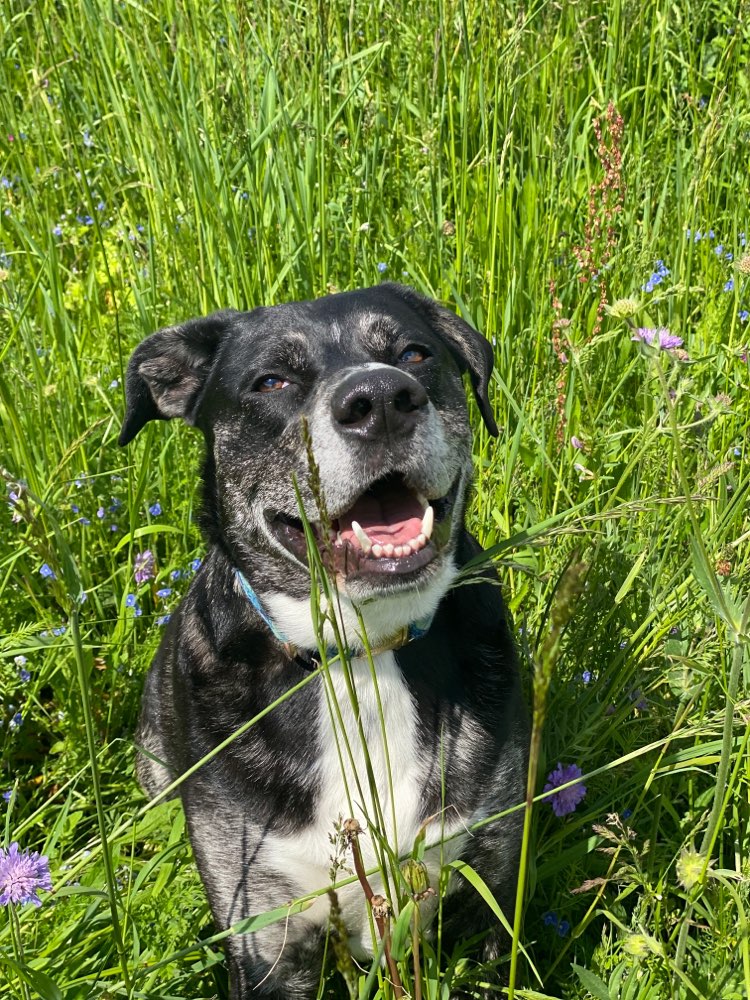 Eine tolle, große Wiese. In der Zeckenzeit empfiehlt sich ein Schutz, weil das Gras recht hoch ist.