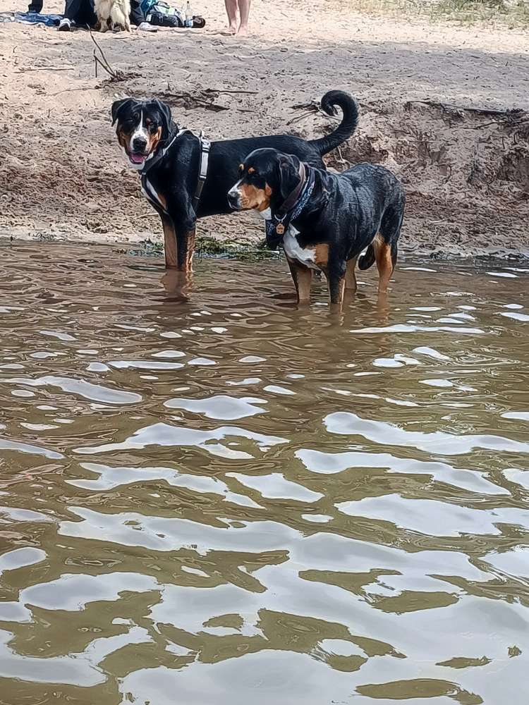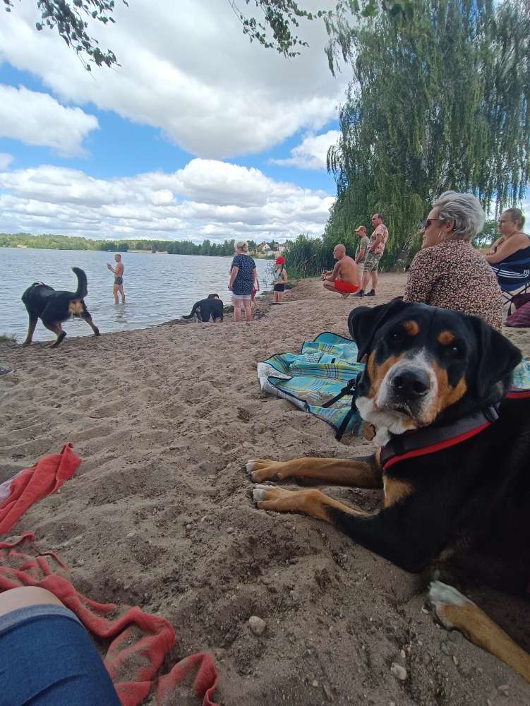 Die Hunde haben einen großen Strand mit flachem Einstieg ins Wasser.
