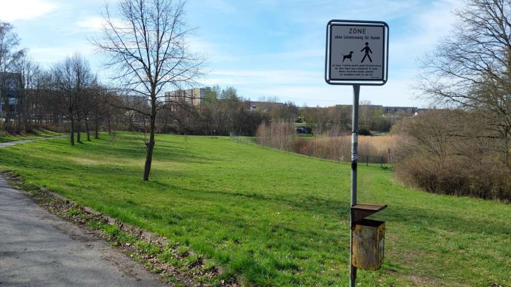 Eines von 2 !!!Freilaufzonen der Stadt Plauen,die als einige der wenigen Städte Deutschlands auf eine generelle Leinenpflicht im gesamten Stadtgebiet einschließlich sämtlicher Grün-und Parkanlagen besteht….und das nur zum Zwecke des Geldes,denn überwacht wird das streng und bezahlen lässt sich die Stadt Zuwiderhandlungen auch recht saftig😠