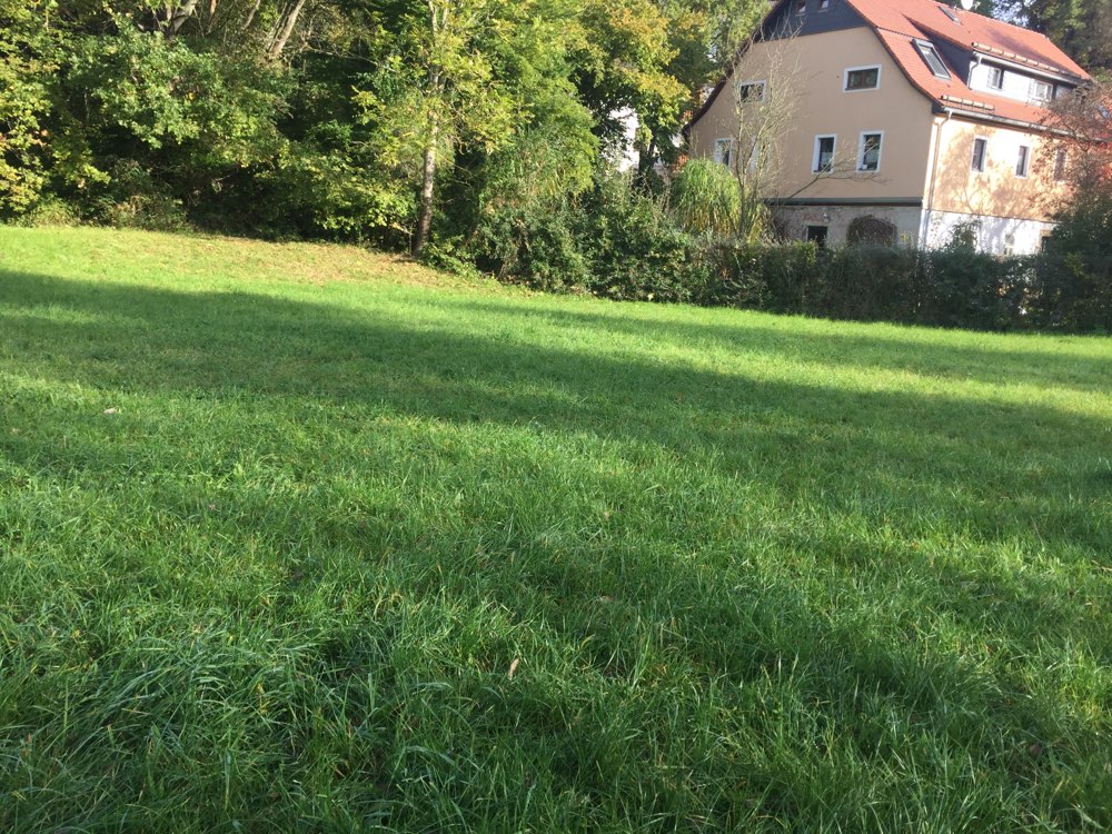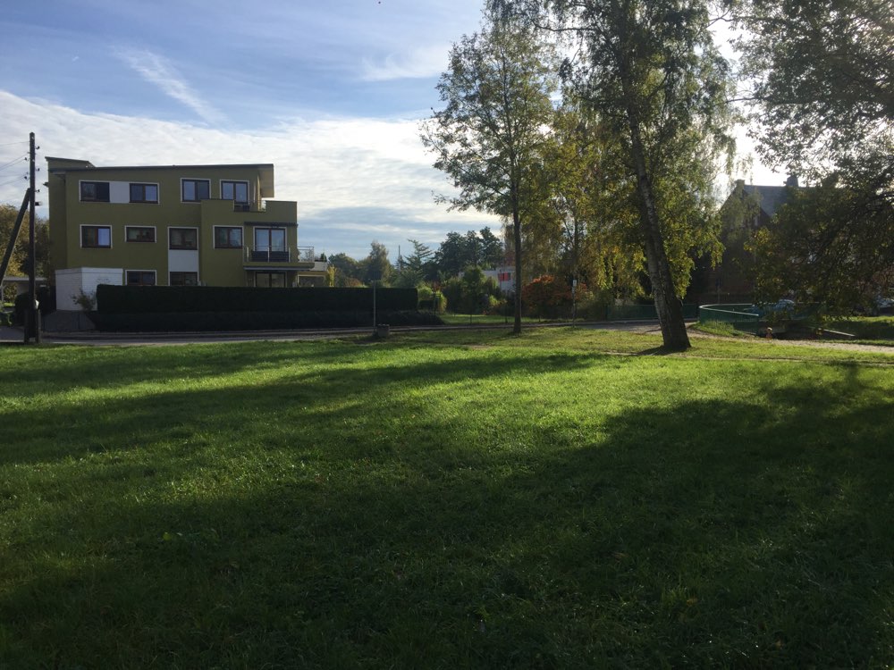 Eine nicht zu kleine, nicht zu große Wiese. Leider komplett ohne Einzäunung, liegt dieser Auslauf an einem Rad-und Spazierweg, sowie an einer auch schon mal befahrenen Nebenstraße - was ich persönlich nicht unbedingt sicher und geeignet finde.