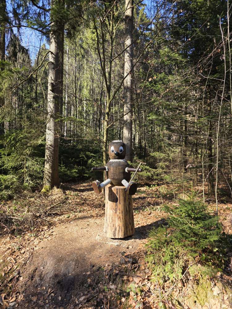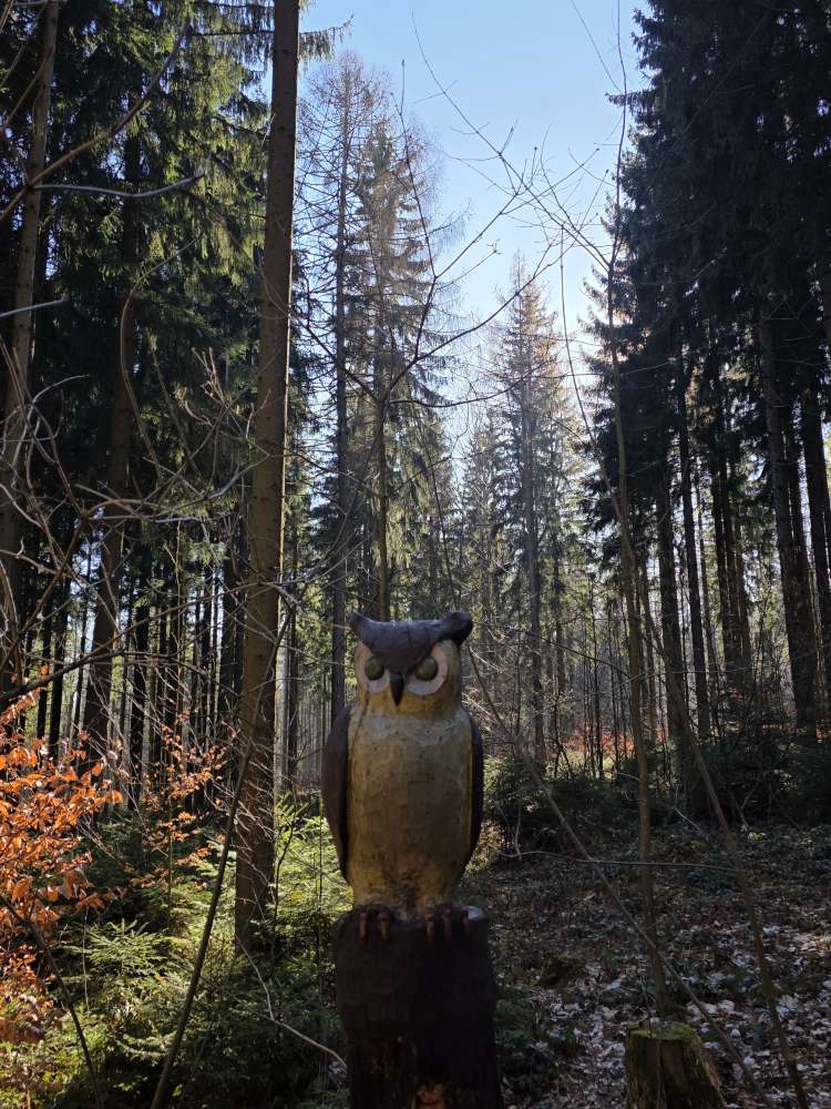 Ein sehr großer Wald, in dem man schön wandern gehen kann und nebenbei entdeckt man noch schöne Holzfiguren.