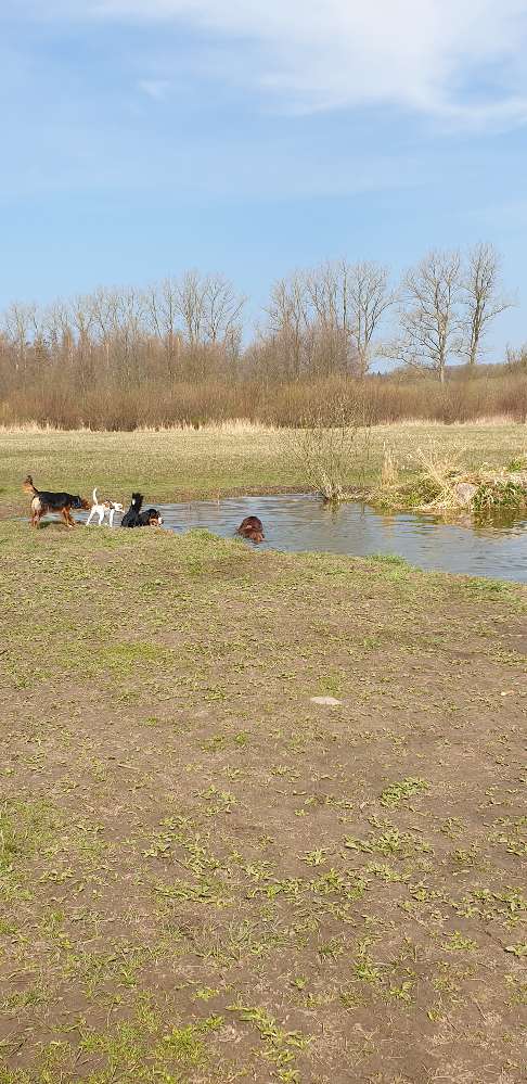 Das Auslaufgebiet ist wirklich toll. Immer nette Menschen mit ihren Hunden dort. Ein Mülleimer für die Hinterlassenschaften im Freilauf wäre noch sehr gut, weil man sonst die ganze Zeit damit herum laufen muss. Wasser zum trinken für die Hunde sollte man möglichst auch mitbringen, da die Badeteiche eher nicht so gut geeignet sind. Ich finde es persönlich sehr schade, dass ich immer erst über oder unter der Warnow durch muss um hinzukommen, sonst wäre ich viel öfter da.