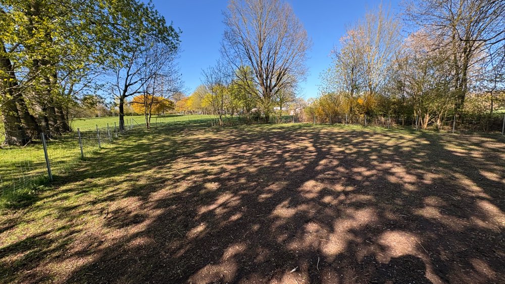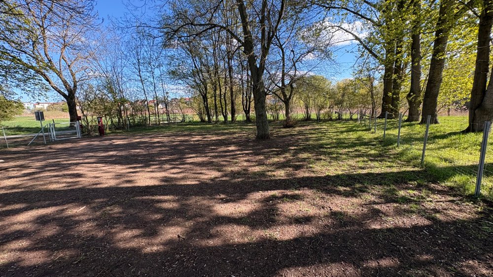 Eine schöne, überschaubare Auslauffläche mit vorhandener Sitzgelegenheit sowie Mülleimern und Hundekotbeuteln. Der Boden ist eben, wodurch sich hier sehr gut Trainingseinheiten durchführen lassen. Das Gelände ist vollständig eingezäunt, erkennbare Lücken oder Löcher gibt es nicht, sodass sich mein Hund hier frei und sicher bewegen kann.