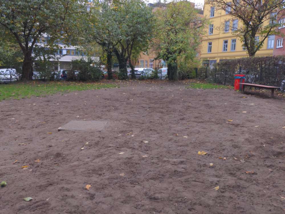 Fläche mitten in der Stadt, umzäunt, sauber aber leider sehr viele löcher was zu bösen Verletzungen führen kann.