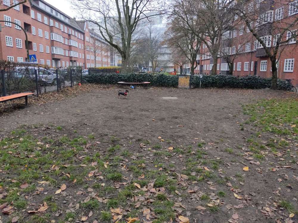 Eine eingezäunte Hundewiese mitten in der Stadt. Leider sehr viele Löcher, wo man sich schnell verletzen kann. Aber.... Er ist sauber, es sind Kottüten und Mülleimer vorhanden.