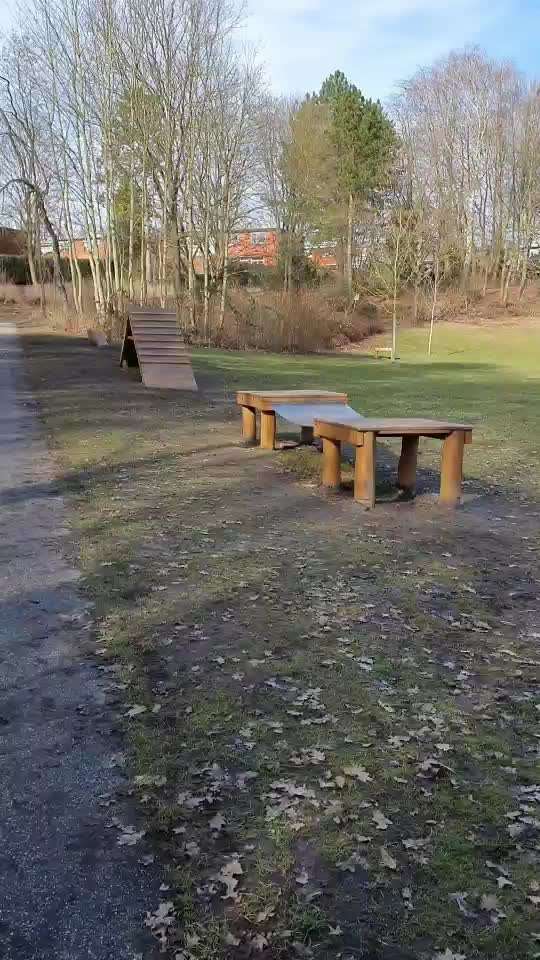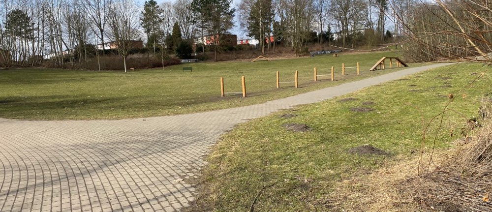 Das Gelände ist nicht groß und ohne Zaun. Es befinden sich ein paar Agilitigeräte darauf.