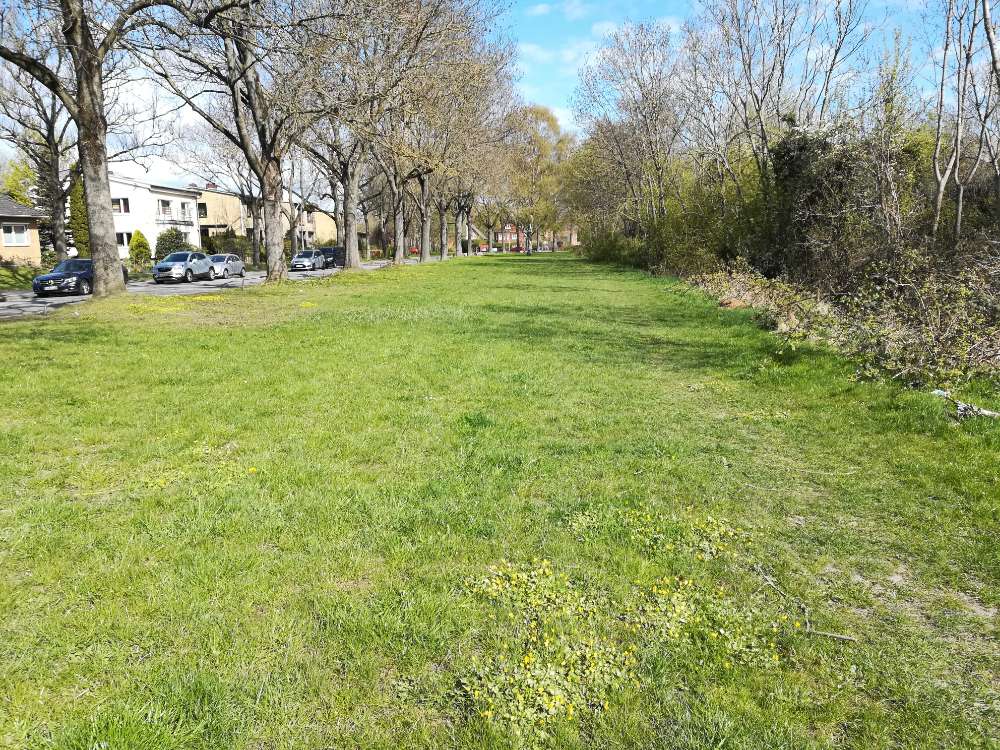 Eine kleine Wiese, uneingezäunt, direkt an der Straße.