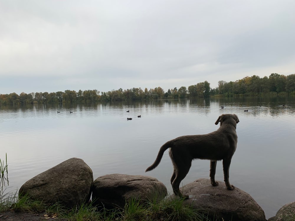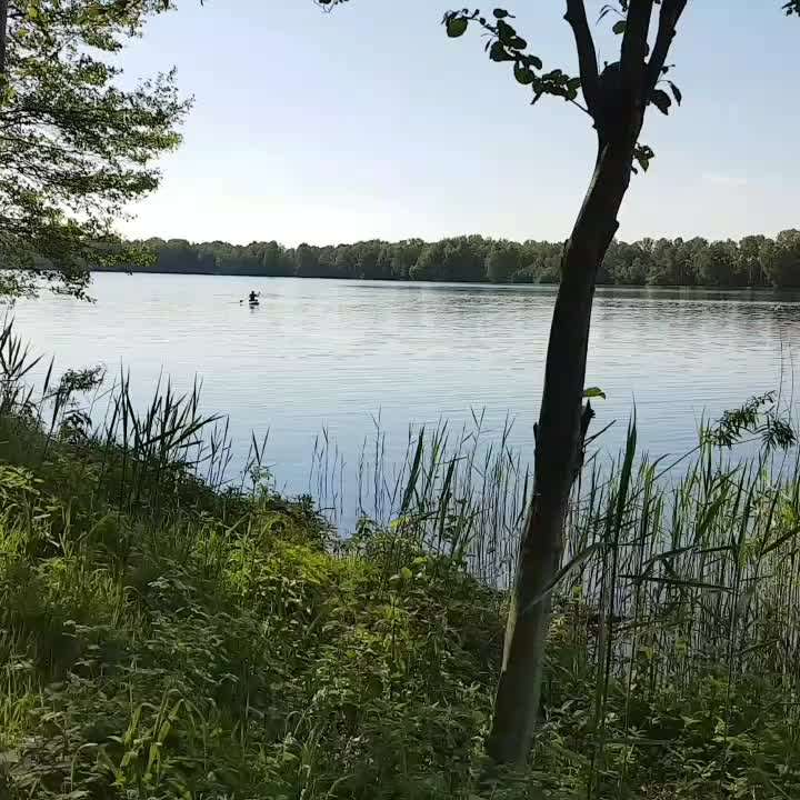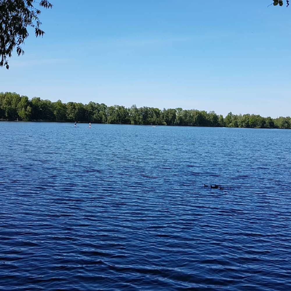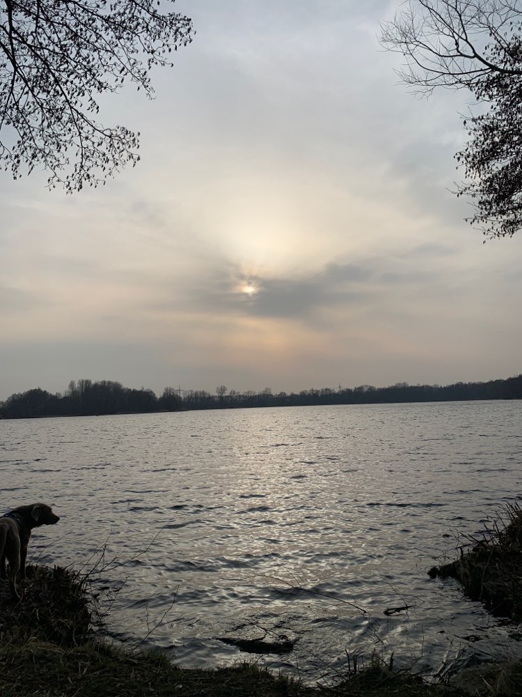 Ein schöner See, um den man innerhalb ca. einer Stunde rum ist. An mehreren Stellen besteht die Möglichkeit, dass die Hunde trinken können. Es gibt auch eine kleine Badestelle mit Sand. Dort können Hunde und Kinder spielen. Eine tolle Strecke.