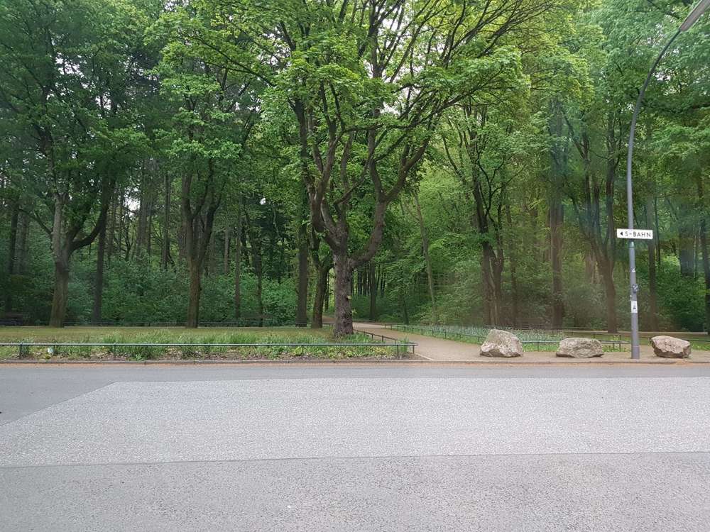 Der kleine Waldabschnitt bietet den Hunden einen Freilauf. Das Stück ist allerdings offen und angrenzend an Straßen. Ab und an laufen hier auch Jogger ihre Runden.