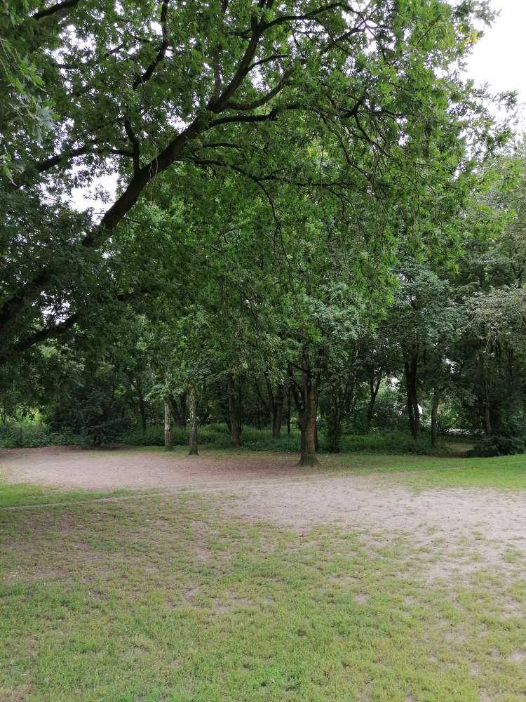 Der Hundeauslaufplatz ist wirklich super – es gibt jede Menge Platz zum Toben und Rennen. Das Gelände ist komplett eingezäunt, was ein sicheres Spielen ermöglicht. Mülleimer sind vorhanden, was sehr praktisch ist, und es gibt zwei Bänke, auf denen man entspannt sitzen kann, während die Hunde spielen.
