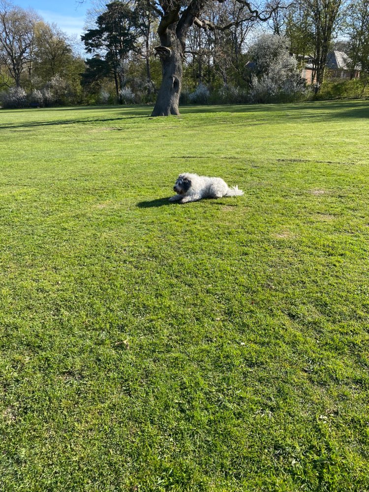 Eine große Wiese am Rand des Parks. Nicht eingezäunt.