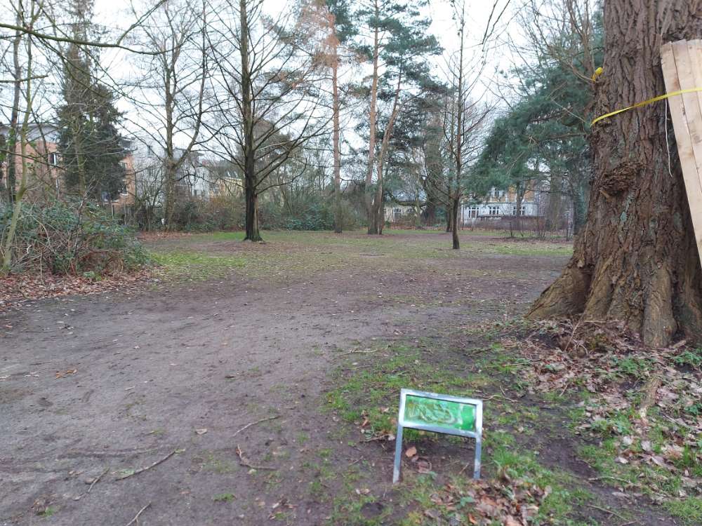 Auf der Wiese kann man Hunde frei laufen lassen. Es gibt auch einige Buddellöcher.