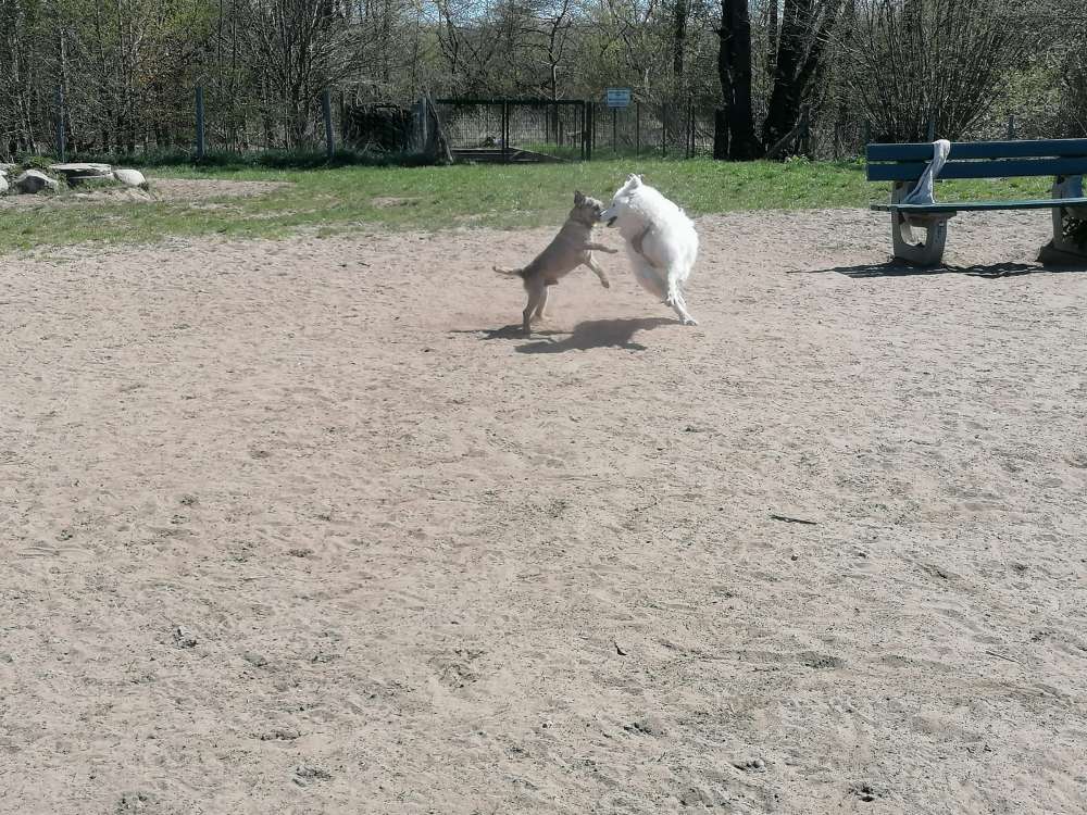 Schöner umzäunter Hunde Platz, leider mit der Zeit etwas sandig geworden. Vorallem morgen und abends viel los