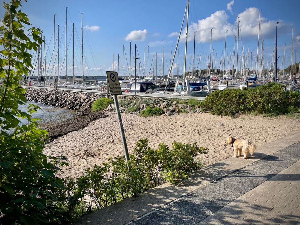 Man sieht, was ich von Freunden schon hörte: ein kleines, liebloses Stückchen Sand mit Zugang zur Förde, mehr nicht. Kein Ort, an dem sich Hund und Halter wohlfühlen könnten. Wie Hundestrand geht, zeigt Laboe ein paar Kilometer weiter.