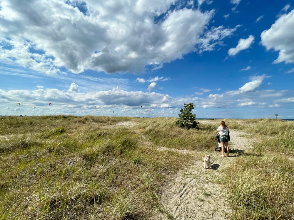 Ein schöner, großer und gepflegter Strand, an dem man sich gerne aufhalten mag und auch ein paar mehr Schritte laufen kann. Hunde können hier nach Herzenslust rennen, toben und sich im Zweifel auch aus dem Weg gehen.