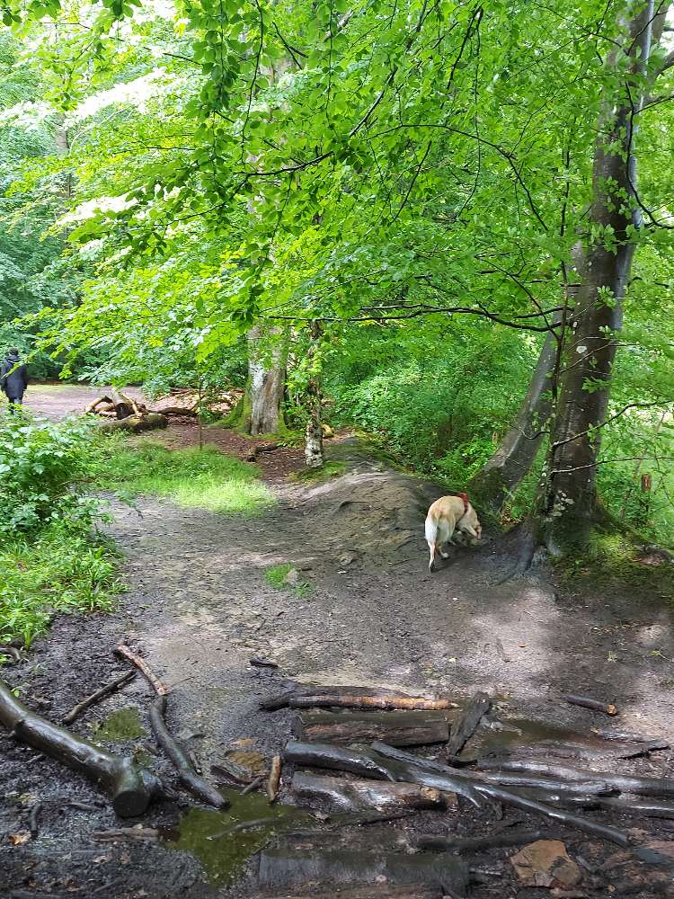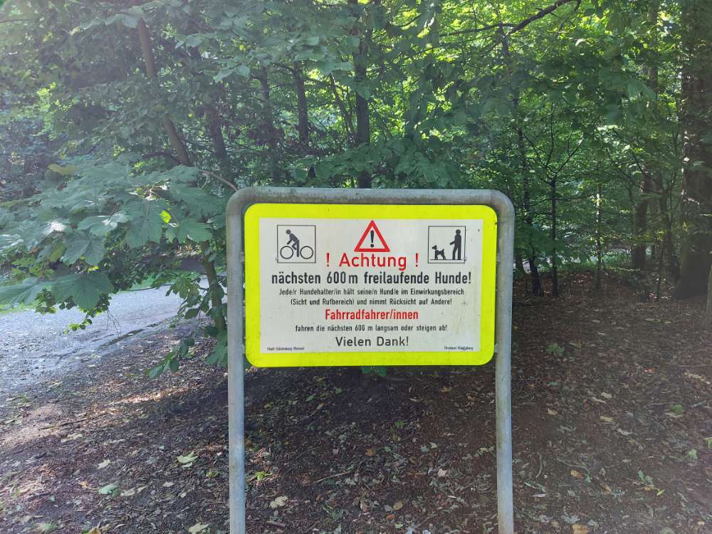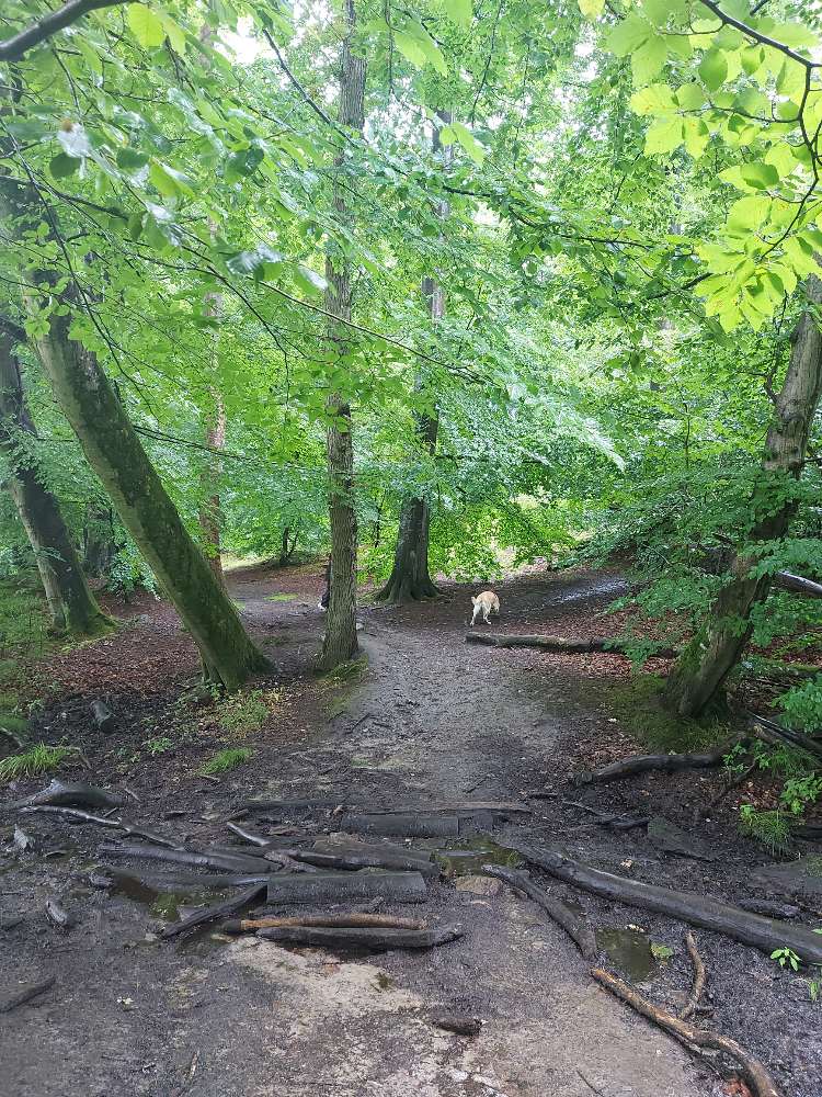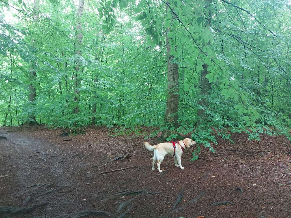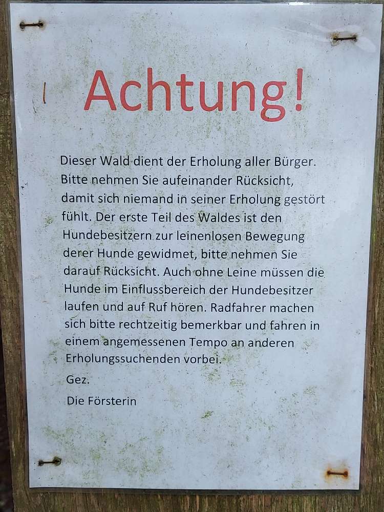 600 meter ohne leine möglich, der rest dieses zweifellos schönen waldes muss an der leine entdeckt werden. Hundewald ??? Mogelpackung.(ortrud)