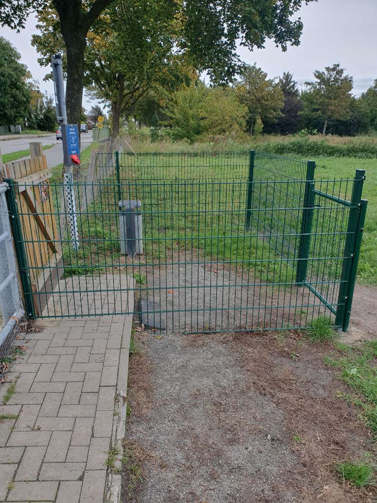 Es ist eine Schleuse installiert, damit die Hunde ohne Risiko vom Platz gehen können. Diese Vorrichtung ist von Hundehaltern/innen der Mini-Hunde-Gruppe finanziert worden.