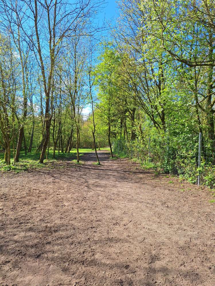 Netter kleiner Hundefreilauf mit Wiese und Büschen und Bäumen zum spielen und erkunden:)