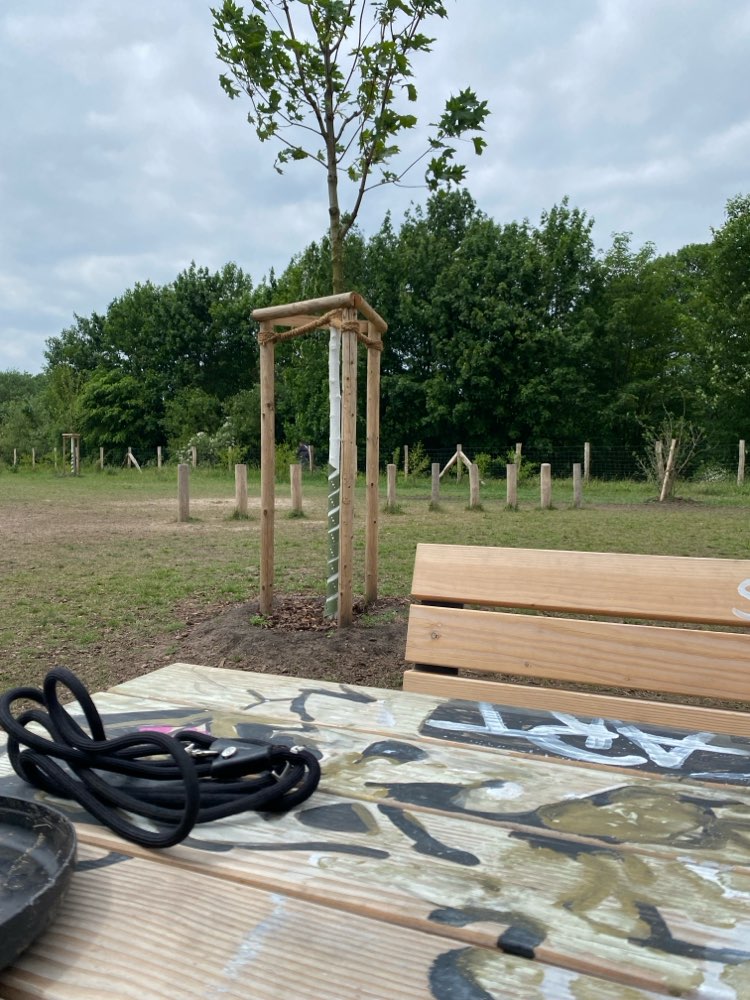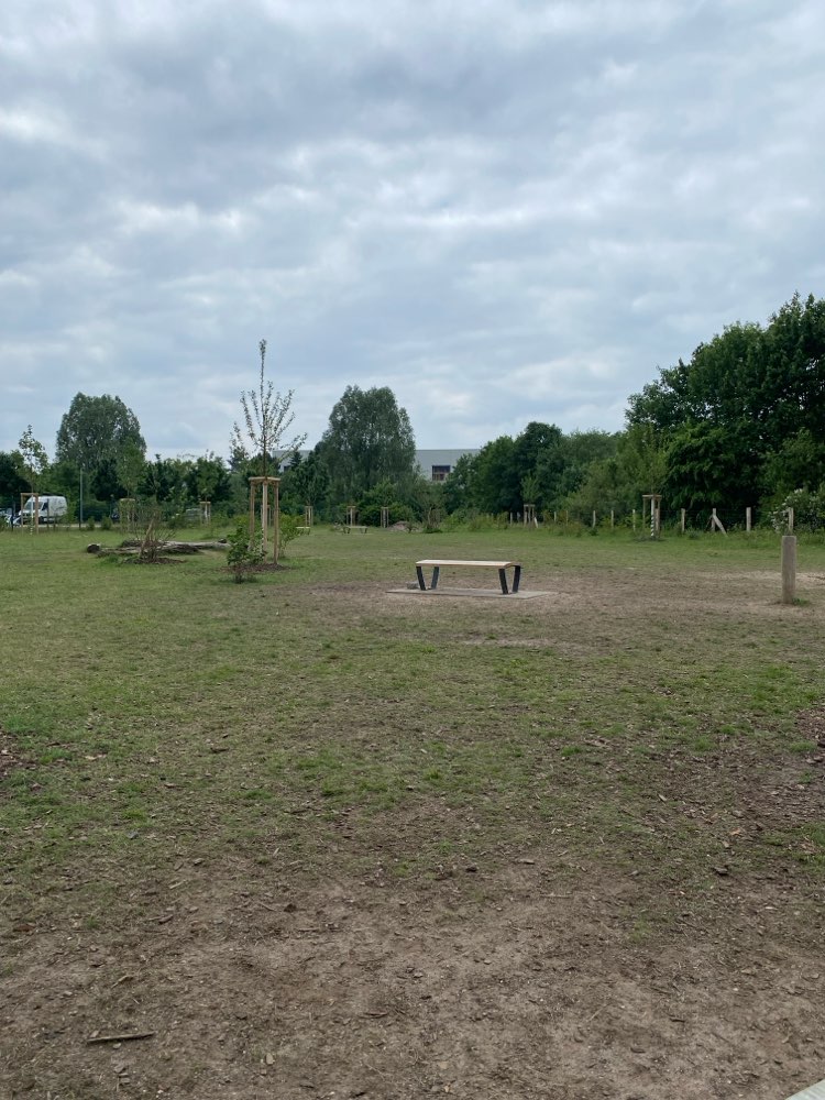 Mittlerweile komplett eingezäunt. Die erste Fläche dieser Art im Stadtgebiet. Unser Rocko liebt es hier
