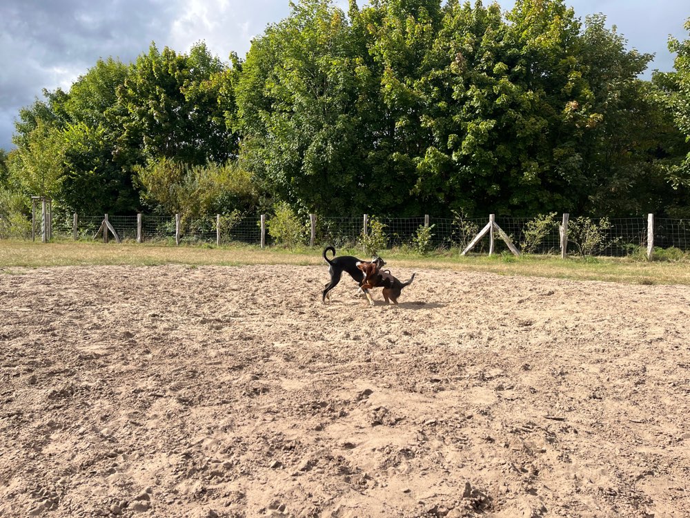 Schöner Freilauf, alles eingezäunt. Napf sowie Wasser wird bereit gestellt. Bis jetzt nur gute Erfahrungen gemacht