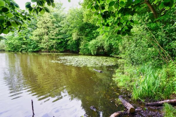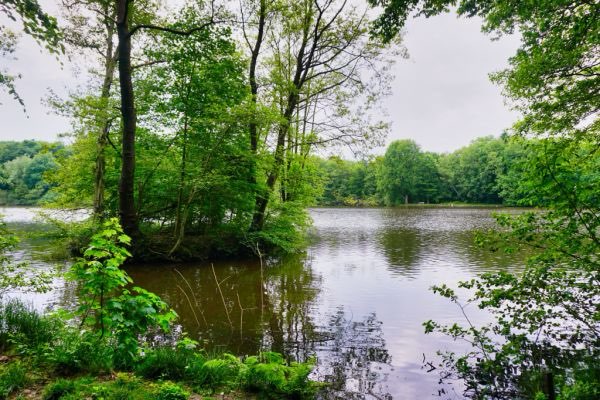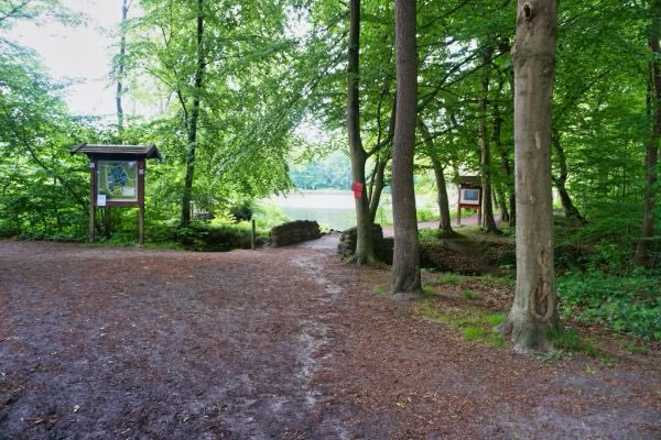 Ein schöner See mit angrenzendem Waldgebiet. Es gibt eine versteckte Badestelle. Die unausgesprochene Regel unter Hundehalter*innen gilt auch hier: Leine dran, wenn der entgegenkommende Hund an der Leine ist. Ansonsten gibt es hier auch viele Freiläufer.