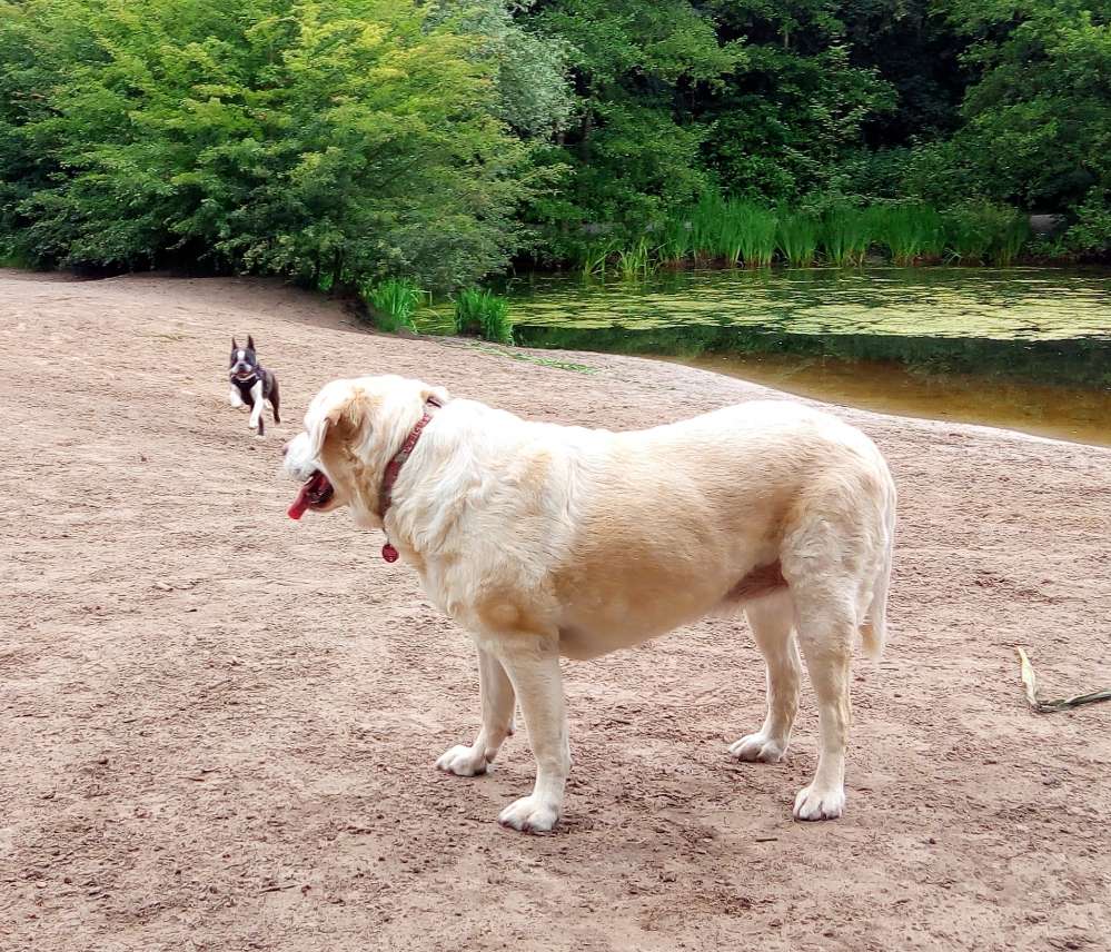 Auch gerne dabei, ein kleiner, grinsender alter Mann mit Sharpei, der vorgibt, Vorstandsvorsitzender des Vereins zu sein, welcher die Freilauffläche errichtet hat. Läuft auch dort herum und gibt Verhaltensmaßregeln. Kleiner Mann, ganz groß!