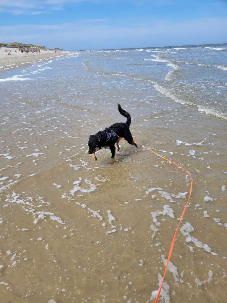 Schöner Strandabschnitt mit viel Platz für die Hunde. Allerdings keine besondere Infrastruktur für Hunde und aufgrund von Vogelschutz in der Saison Leinenpflicht.