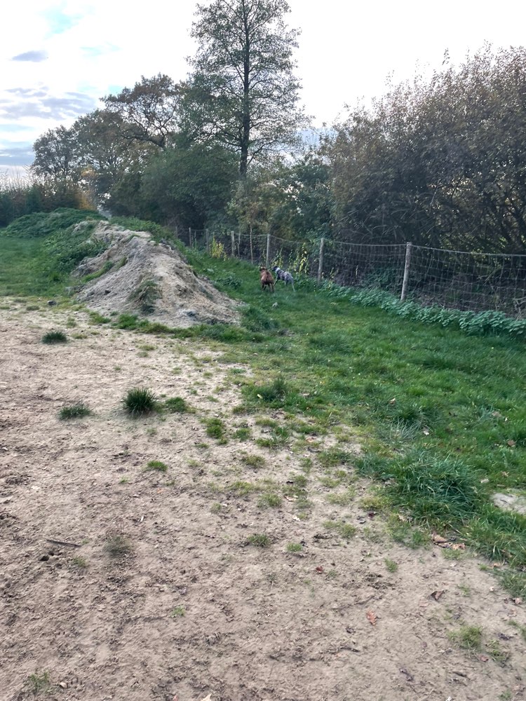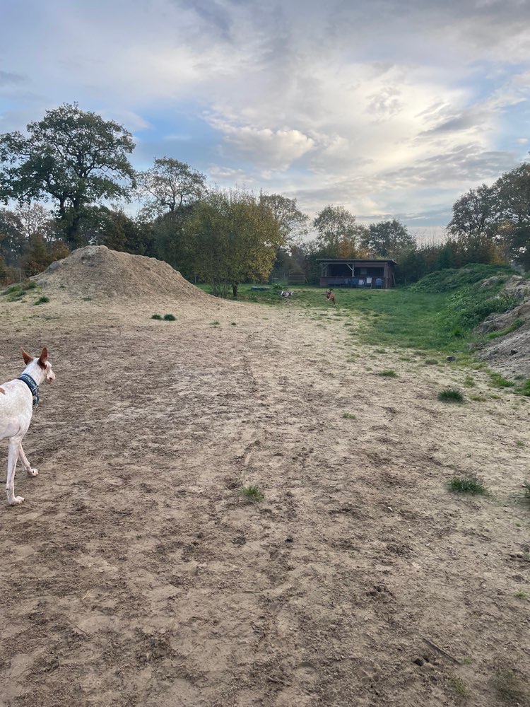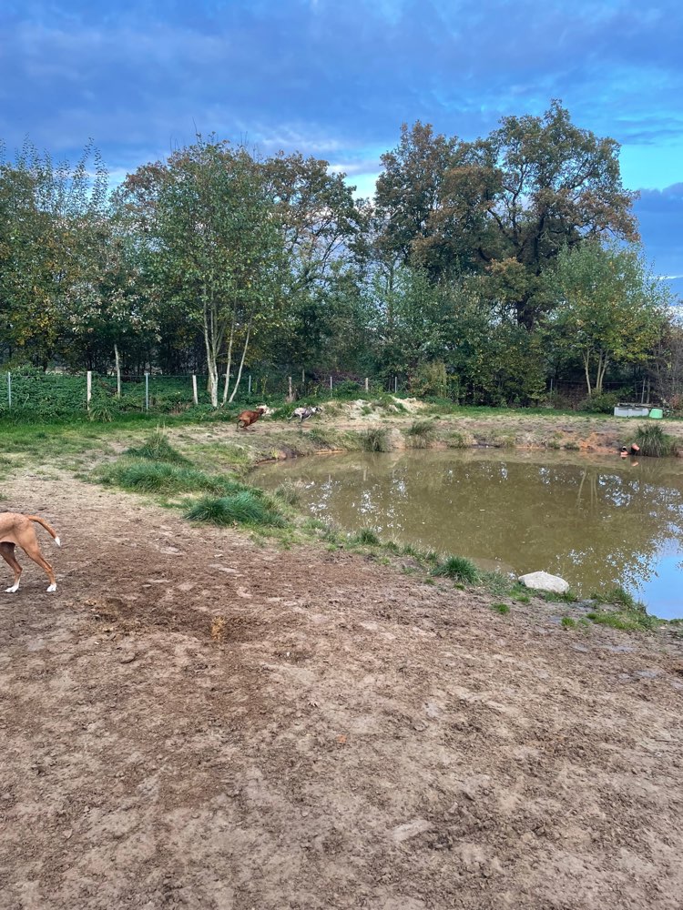 Eine einfache freilauffläche dir ihren Zweck erfüllt mit einen kleinen Teich. Hier können Hunde frei rennen toben. Nachteil, keine befestigten Wege, daher bei schlechten Wetter Stiefel Pflicht.