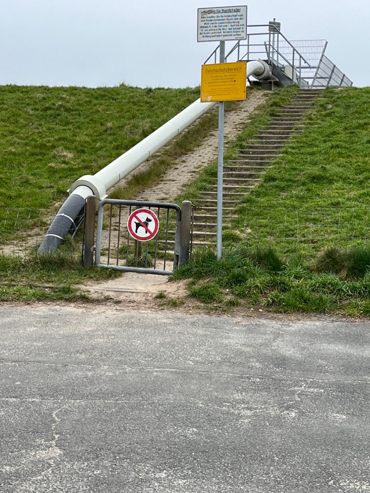 1.) Der Übergang zum Deich ist für Hunde verboten (siehe Schild!)
