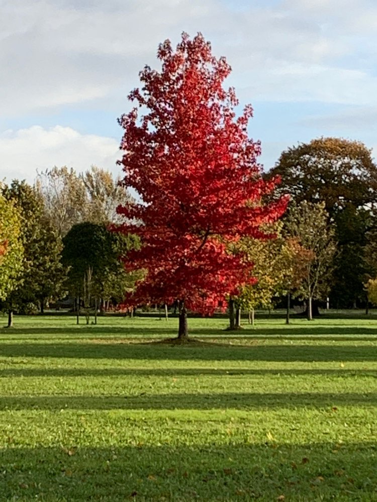 Eine schöne Ecke, wo Kinder auf dem Spielplatz spielen können und Hunde im Baumpark schnüffeln und laufen können.