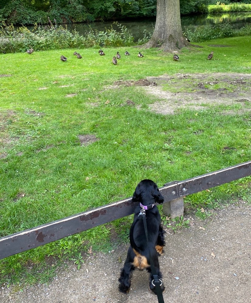 Im ganzen Park gilt ganzjährlich eine Leinenpflicht. Dafür gibt es ein weitläufiges Gebiet mit vielen auch kleineren Wegen, und ein Tiergehege, wo der ein oder andere Welpe mal andere Tiere kennenlernen kann. Der Park ist gut sowohl mit dem Auto als auch mit Bus und Bahn zu erreichen. Super zum Spazieren, aber frei laufen lassen kann man seine Hunde nicht.