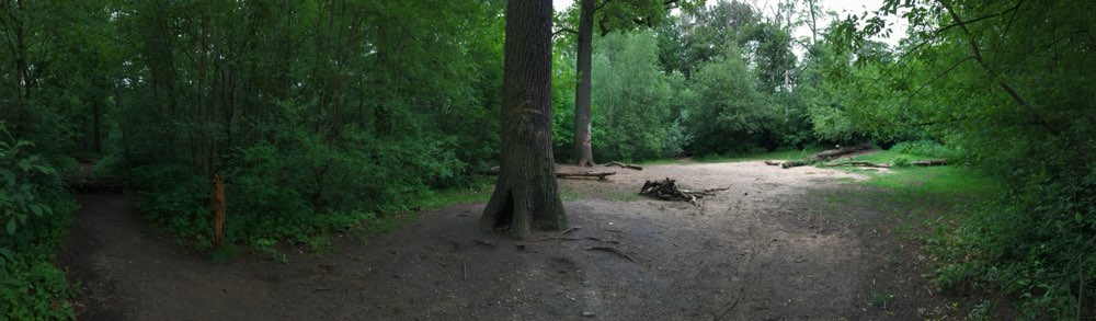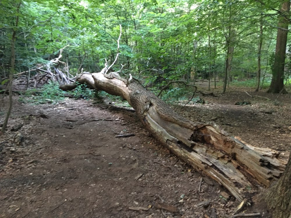 schöne Trampelpfade mit umgefallenen Bäumen vorhanden zum Klettern und Balancieren, viele Trainingsmöglichkeiten