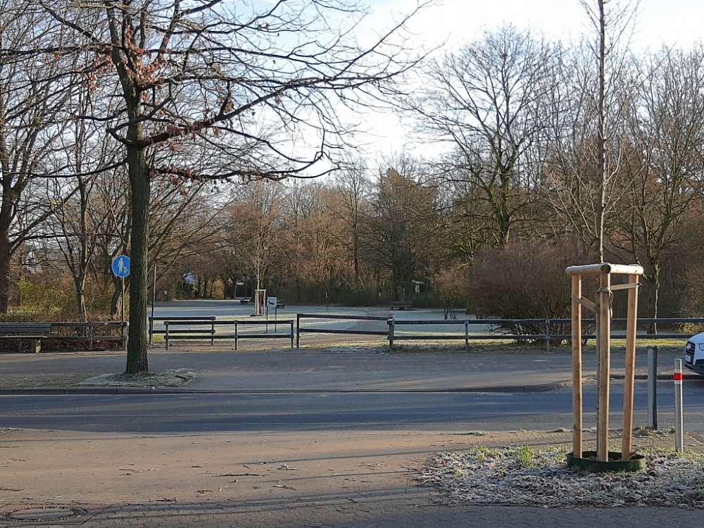 Auslauffläche ist nicht besonders groß. Sie liegt direkt an einer Hauptstraße und an einem Altenheim. Zur Hauptstraße hin ist ein Holzzaun verlegt, wodurch die Hunde nicht direkt auf die Hauptstraße laufen können. Durch die Auslauffläche fahren viele Radfahrer.