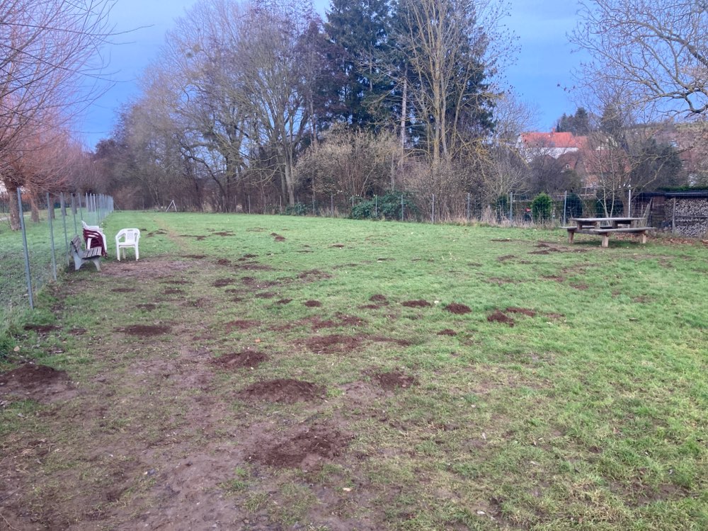 Eine wirklich tolle Wiese. Eine Pfote Abzug, wegen der vielen gebuddelten Löcher. Ziemlich gefährlich für Hunde die mit Tempo rennen...Einige Löcher haben wir mit der Erde von den Maulwurfshügel zugemacht, als wir dort waren.