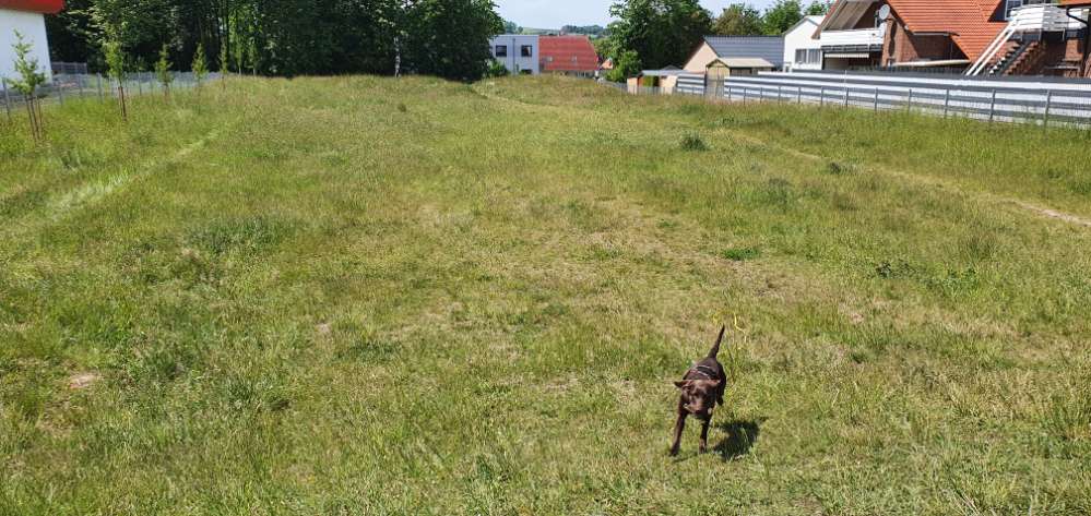Pluspunkte für den hohen+festen Zaun u die Größe der Wiese. Trotz Regen war der Boden recht gut -kein Schlamm.