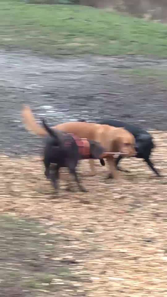 Gut besuchte Hundewiese.