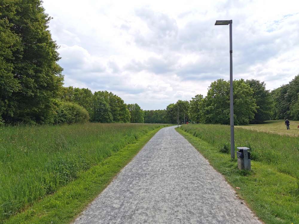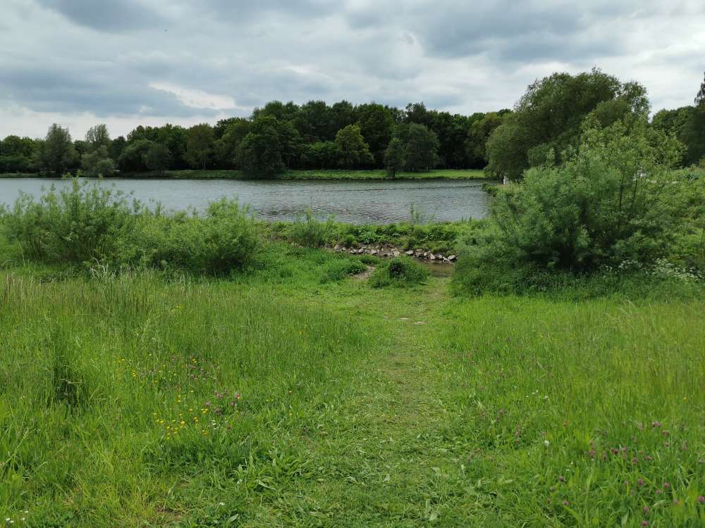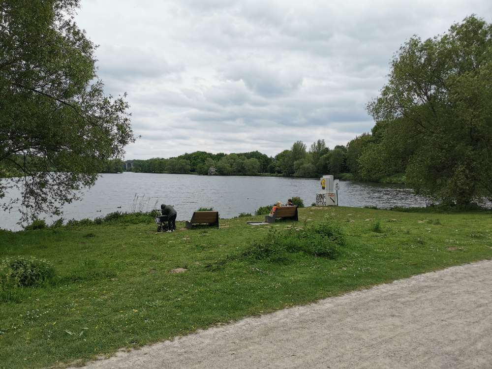 Super schön, da lang zu gehen. Es gibt gute, feste Wege und viele Wiesen um den See herum. Plus Restaurant, Frisbeekörbe und zwei Spielplätze. Bänke, Mülleimer und Parkplatz sind auch vorhanden.