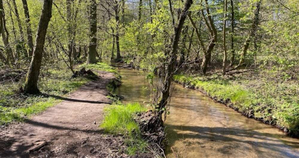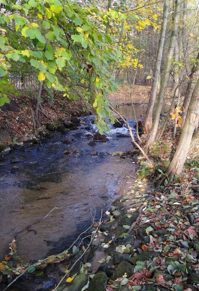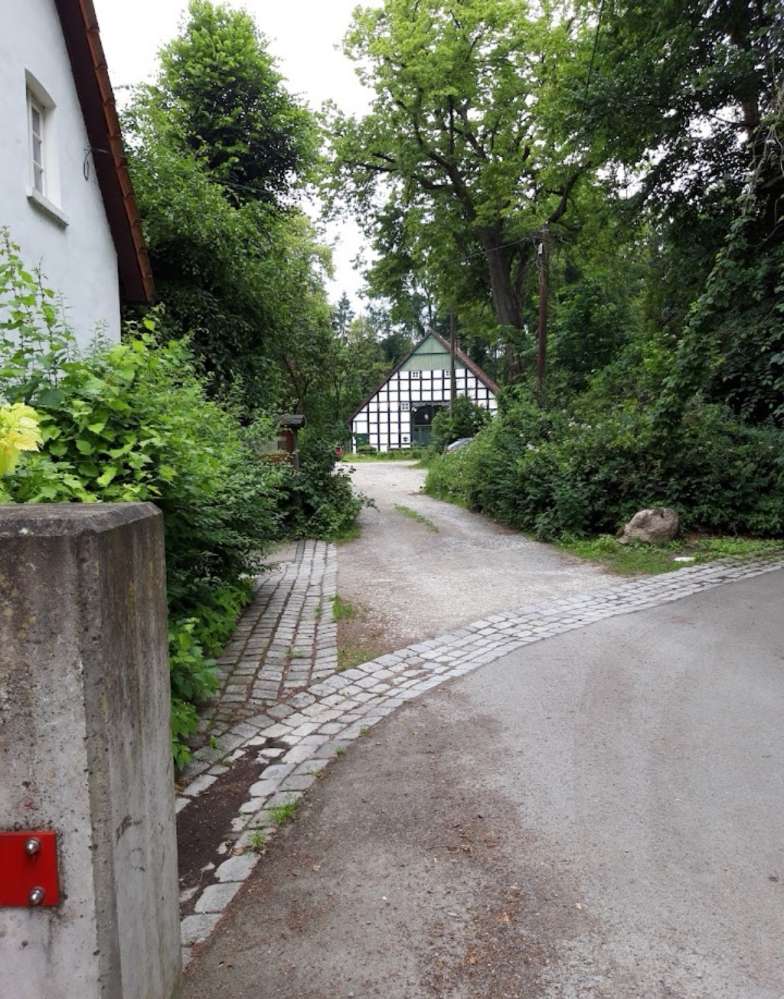 Große Wiesen, den Wald entlang, neben der Mühle sieht man es auch direkt.